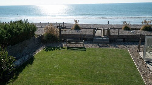 The beach is a mix of sand and stone depending on the state of the tide a perfect place for buckets and spades. Waves Cafe and Sandwich Bar ltd. At ground level there is an enclosed courtyard garden and to the front a large patio area with access to a communal outdoor shower to hose off sandy dogs kids or water sports gear.